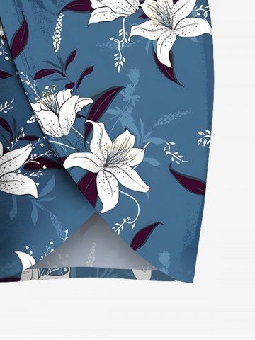 Plus Size Flower Leaf Print Hawaii Convertible Beach Cover Up - Sky Blue - Xs