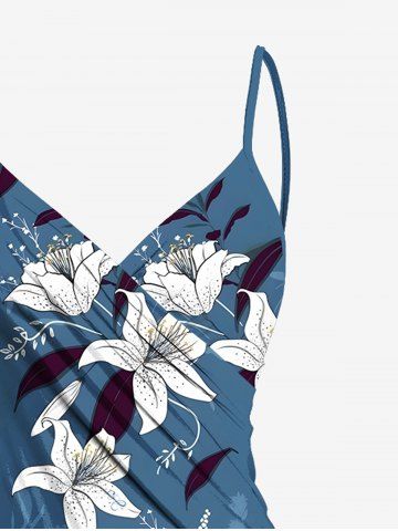 Plus Size Flower Leaf Print Hawaii Convertible Beach Cover Up - Sky Blue - 4x