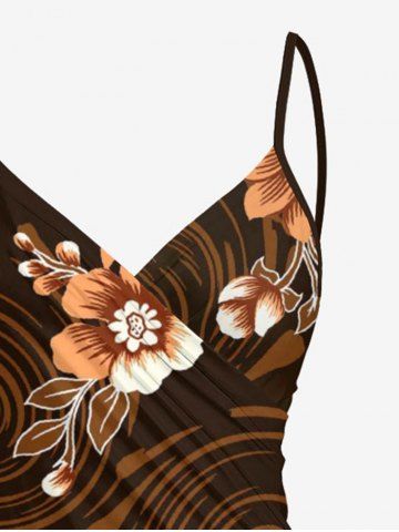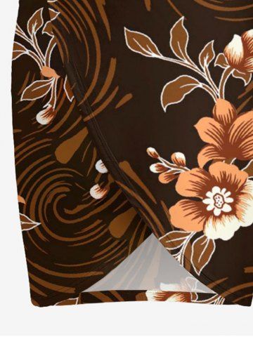 Plus Size Flower Leaf Spiral Curve Print Hawaii Convertible Beach Cover Up - Brown - 4x