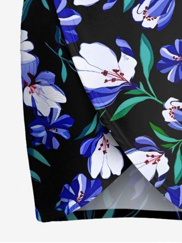 Plus Size Flowers Leaf Print Convertible Hawaii Beach Cover - Black - Xxs