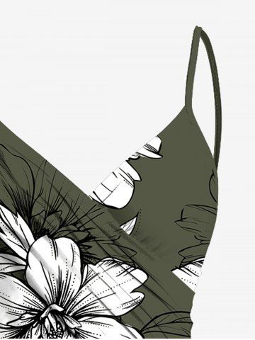 Plus Size Flowers Leaf Print Convertible Hawaii Beach Cover - Deep Green - 2x