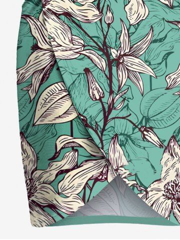 Plus Size Flowers Leaf Print Convertible Hawaii Beach Cover - Green - S