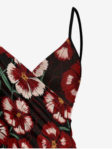 Plus Size Flowers Leaf Print Convertible Hawaii Beach Cover - Black - 3x