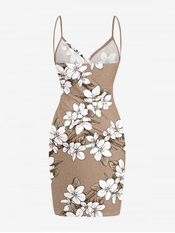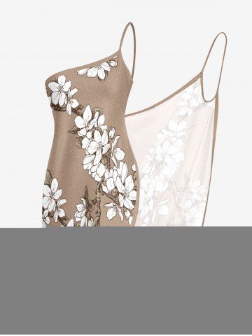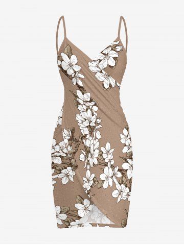 Plus Size Flowers Leaf Print Convertible Hawaii Beach Cover - Tan - Xxs