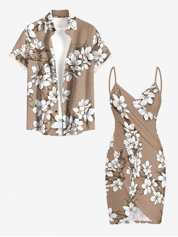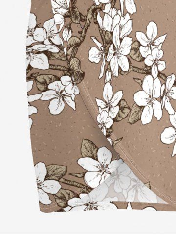 Plus Size Flowers Leaf Print Convertible Hawaii Beach Cover - Tan - 5x