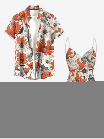 Graphic Swimwear > Plus Size Flowers Leaf Print Convertible Hawaii Beach Cover