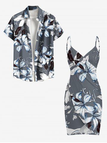 Plus Size Flowers Leaf Print Convertible Hawaii Beach Cover - Gray - 6x