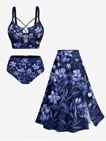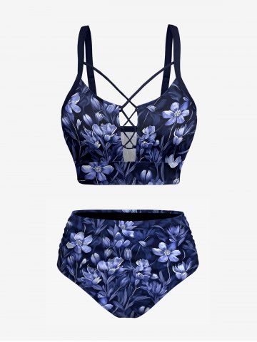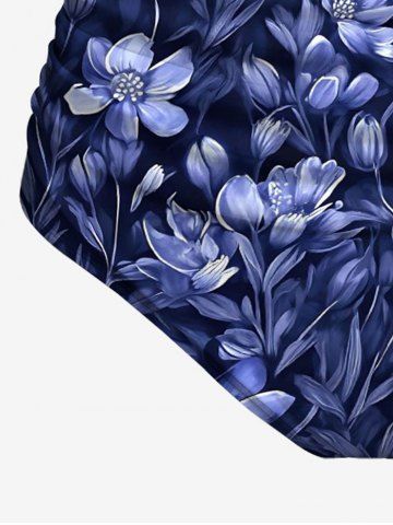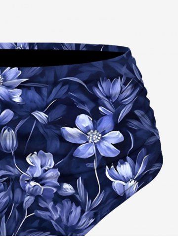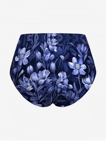 Plus Size Flowers Leaf Print Hawaii Tankini Bottom - Cadetblue - Xs