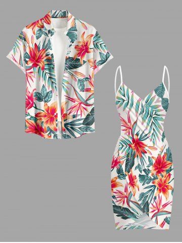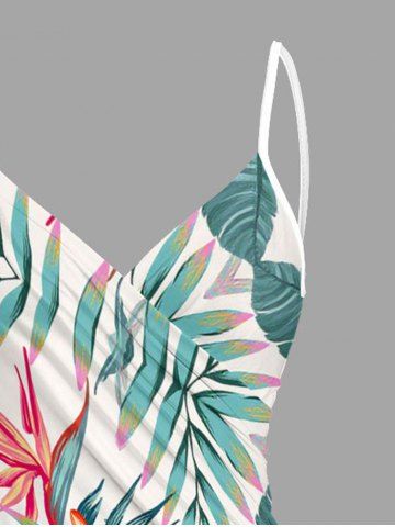 Plus Size Flowers Leaf Tropical Print Convertible Hawaii Beach Cover - White - S