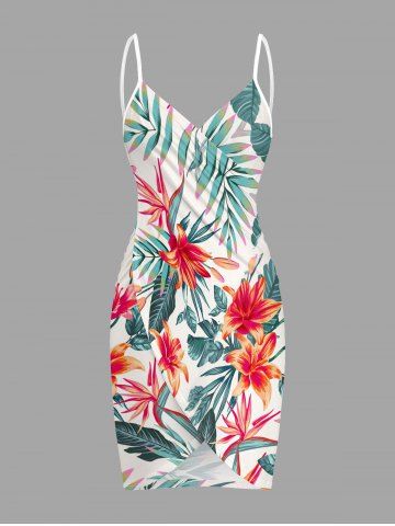 Plus Size Flowers Leaf Tropical Print Convertible Hawaii Beach Cover - White - 4x