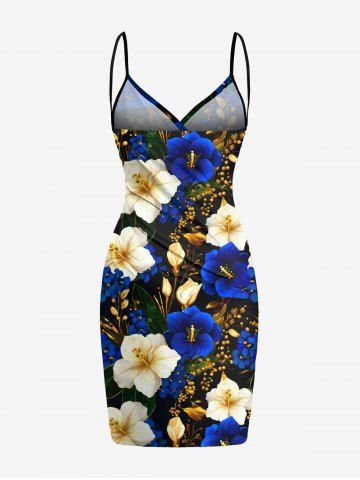 Plus Size Gilding Two Tone Hibiscus Flower Print Hawaii Convertible Beach Cover Up - Blue - Xxs
