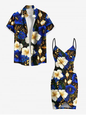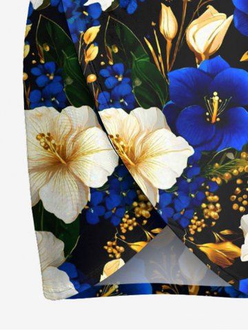 Plus Size Gilding Two Tone Hibiscus Flower Print Hawaii Convertible Beach Cover Up - Blue - 2x