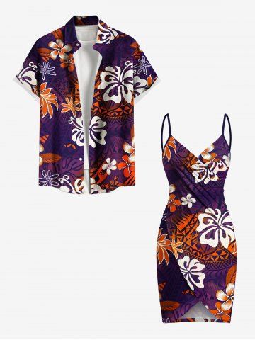 Plus Size Hibiscus Flower Ethnic Print Hawaii Ombre Convertible Beach Cover Up - Purple - 3x