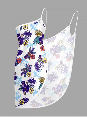 Plus Size Hibiscus Flower Leaf Guitar Turtle Print Convertible Hawaii Beach Cover - Milk White - M