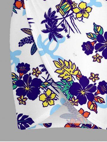 Plus Size Hibiscus Flower Leaf Guitar Turtle Print Convertible Hawaii Beach Cover - Milk White - 3x