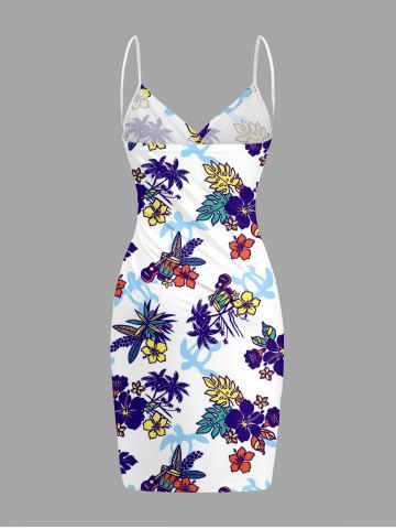 Plus Size Hibiscus Flower Leaf Guitar Turtle Print Convertible Hawaii Beach Cover - Milk White - 6x