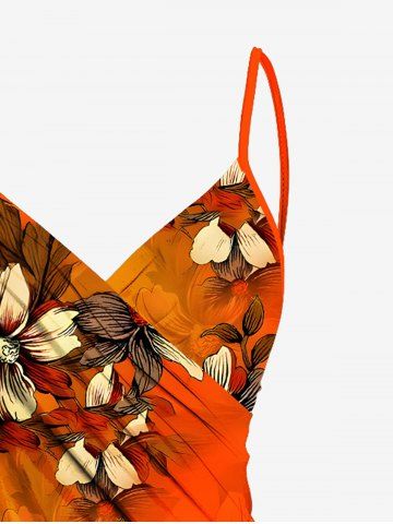 Plus Size Hibiscus Flower Leaf Print Hawaii Ombre Convertible Beach Cover Up - Orange - S