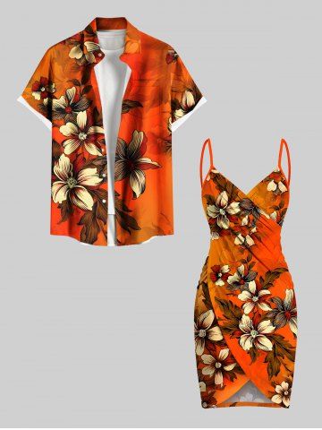 Plus Size Hibiscus Flower Leaf Print Hawaii Ombre Convertible Beach Cover Up - Orange - 1x