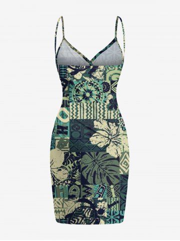 Plus Size Hibiscus Flower Tropical Leaf Ethnic Print Convertible Hawaii Beach Cover - Deep Green - Xs