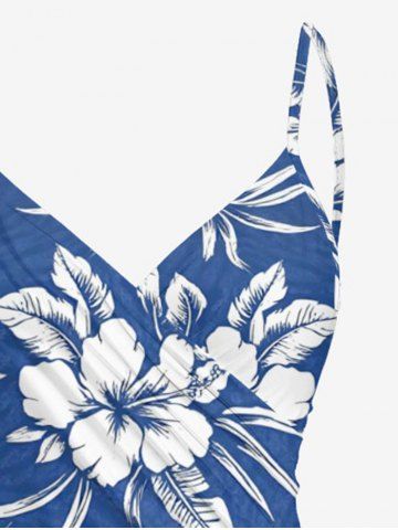 Plus Size Hibiscus Flower Tropical Leaf Print Convertible Hawaii Beach Cover - Sky Blue - 5x