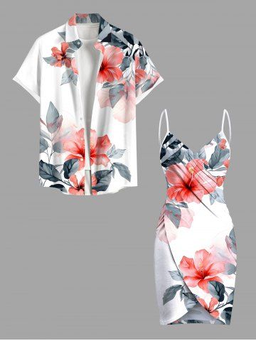 Graphic Swimwear > Plus Size Hibiscus Flowers Leaf Print Convertible Hawaii Beach Cover