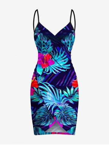 Graphic Swimwear > Plus Size Hibiscus Flowers Tropical Leaf Print Convertible Hawaii Beach Cover
