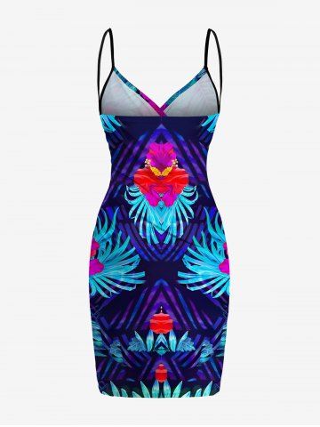 Plus Size Hibiscus Flowers Tropical Leaf Print Convertible Hawaii Beach Cover - Blue - 2x