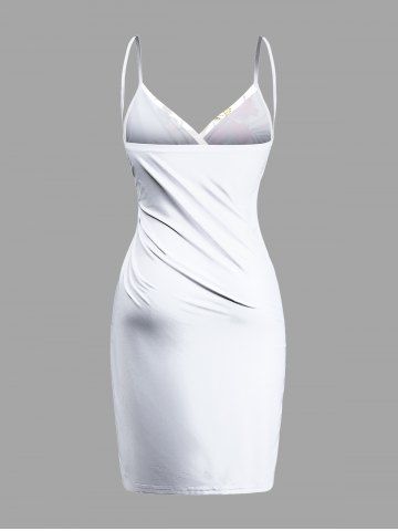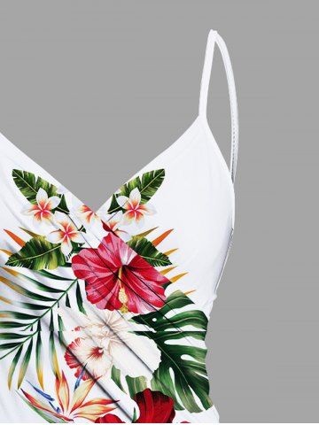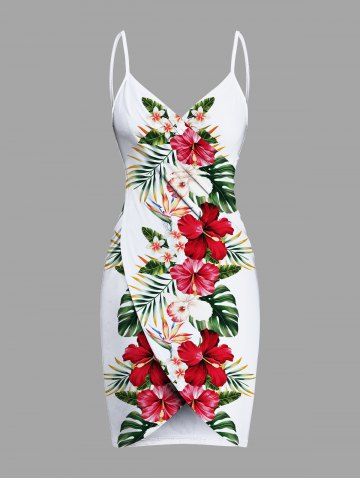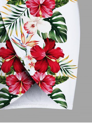 Plus Size Hibiscus Flowers Tropical Leaf Print Convertible Hawaii Beach Cover - Crystal Cream - M
