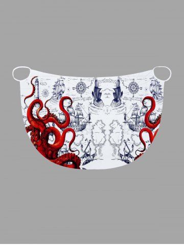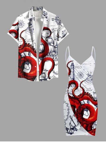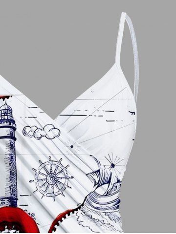 Plus Size Octopus Sailboat Anchor Print Hawaii Cruise Convertible Beach Cover Up - White - 1x