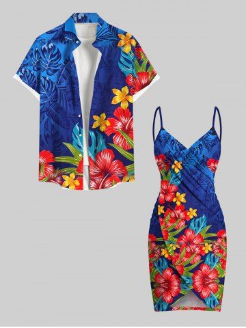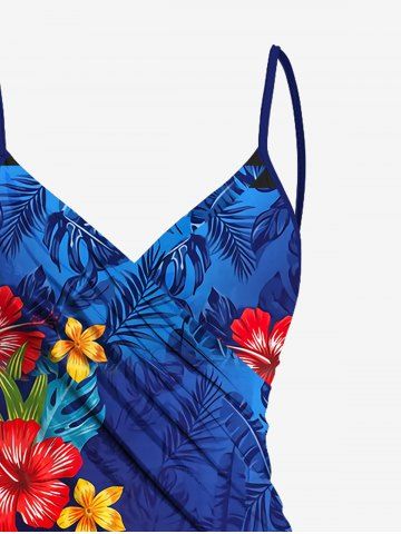 Plus Size Ombre Tropical Leaf Hibiscus Flower Print Hawaii Convertible Beach Cover Up - Sky Blue - Xxs