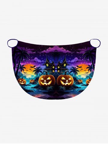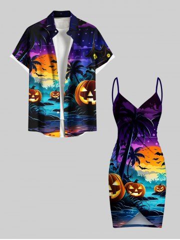 Graphic Swimwear > Plus Size Pumpkin Bat Coconut Tree Moon Castle Print Halloween Convertible Beach Cover Up