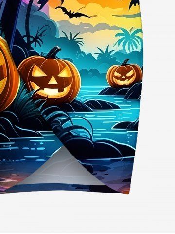 Plus Size Pumpkin Bat Coconut Tree Moon Castle Print Halloween Convertible Beach Cover Up - Black - L