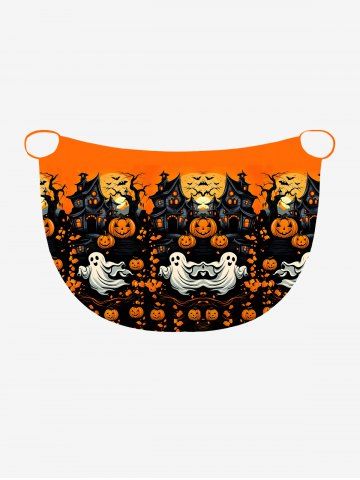 Plus Size Pumpkin Ghost Bat Tree Castle Print Halloween Convertible Beach Cover Up - Orange - 5x