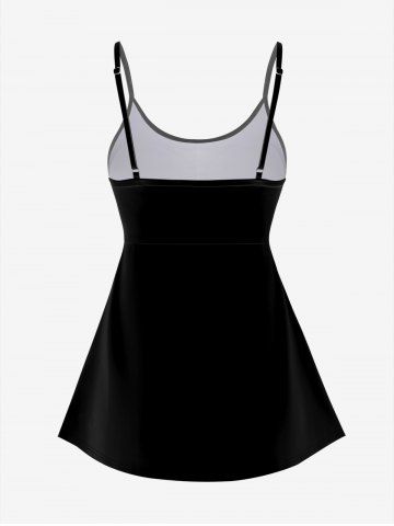 Graphic Swimwear > Plus Size Skull Candle Floral Print Padded Boyleg Tankini Swimsuit (Adjustable Shoulder Strap)