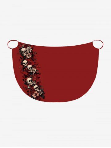 Plus Size Skull Hibiscus Flower Leaf Print Halloween Convertible Beach Cover Up - Red - 1x