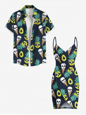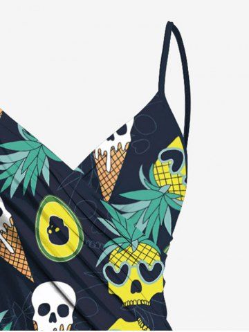 Plus Size Skull Ice Cream Pineapple Avocado Print Hawaii Convertible Beach Cover Up - Black - 1x