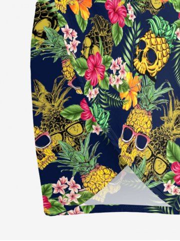 Graphic Swimwear > Plus Size Skull Pineapple Tropical Leaf Hibiscus Flower Print Hawaii Convertible Beach Cover Up