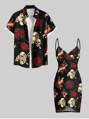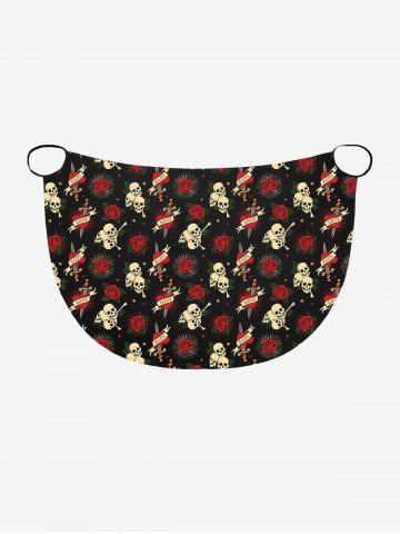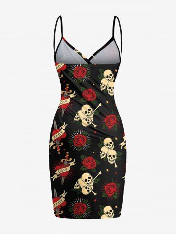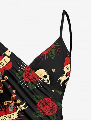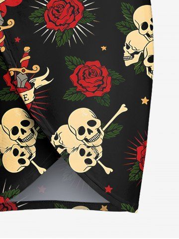 Plus Size Skull Rose Flower Heart Sword Print Halloween Convertible Beach Cover Up - Black - Xxs