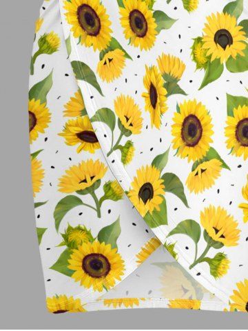 Plus Size Sunflower Leaf Print Hawaii Beach Cover - Yellow - 5x
