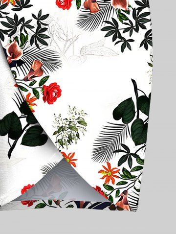 Plus Size Tropical Leaf Flower Print Hawaii Convertible Beach Cover Up - White - L