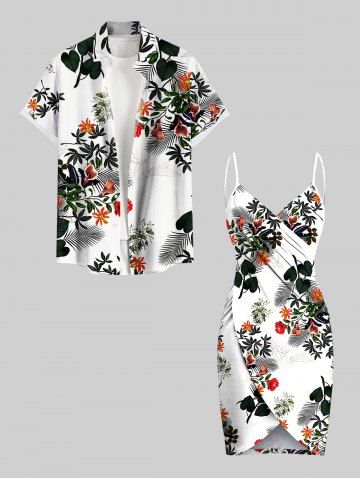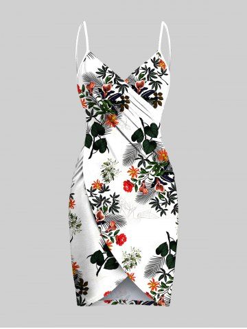 Plus Size Tropical Leaf Flower Print Hawaii Convertible Beach Cover Up - White - 4x