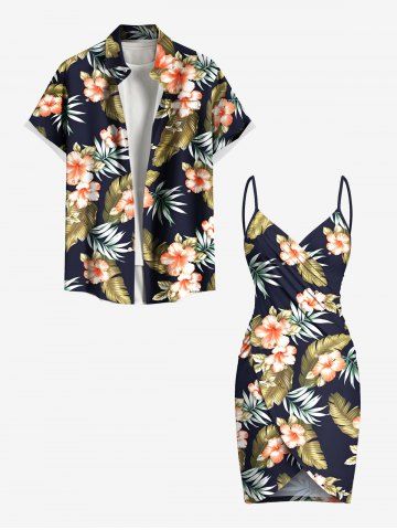 Graphic Swimwear > Plus Size Tropical Leaf Hibiscus Flower Print Hawaii Convertible Beach Cover Up