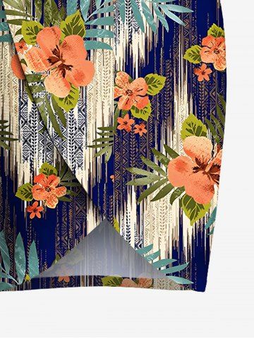 Graphic Swimwear > Plus Size Tropical Leaf Hibiscus Flower Waves Print Hawaii Convertible Beach Cover Up