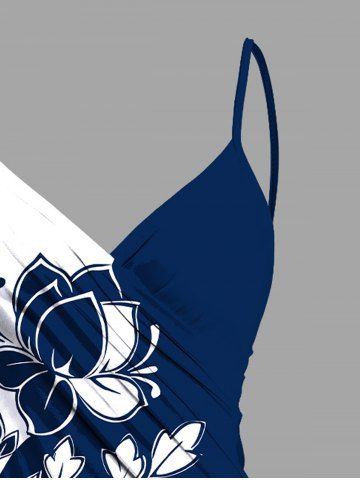 Plus Size Two Tone Flower Leaf Branch Print Hawaii Convertible Beach Cover Up - Blue - 4x