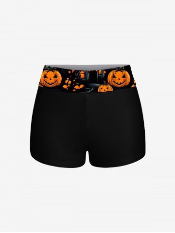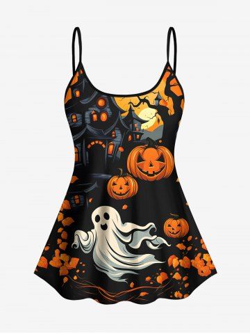 Pumpkin Ghost Castle Tree Moon Print Halloween Boyleg Tankini Swimsuit (Adjustable Shoulder Strap) - Black - 1x