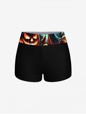 Graphic Swimwear > Skull Pumpkin Wizard Bat Castle Print Halloween Boyleg Tankini Swimsuit (Adjustable Shoulder Strap)