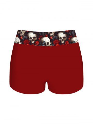 Skull Rose Flower Print Halloween Twist Halter Backless Tankini Swimsuit - Red - 3x