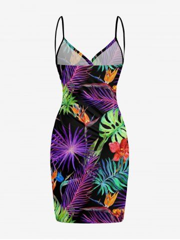 Tropical Leaf Flower Print Hawaii Convertible Beach Cover Up - Black - 2x