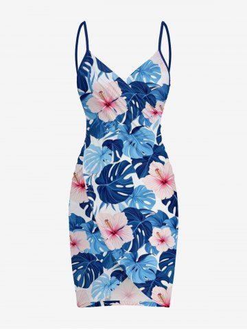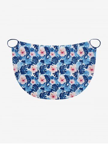 Tropical Leaf Hibiscus Flower Print Hawaii Convertible Beach Cover Up - Blue - 5x