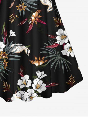 Tropical Leaf Hibiscus Flower Print Hawaii Twist Halter Backless Tankini Swimsuit - Black - Xs